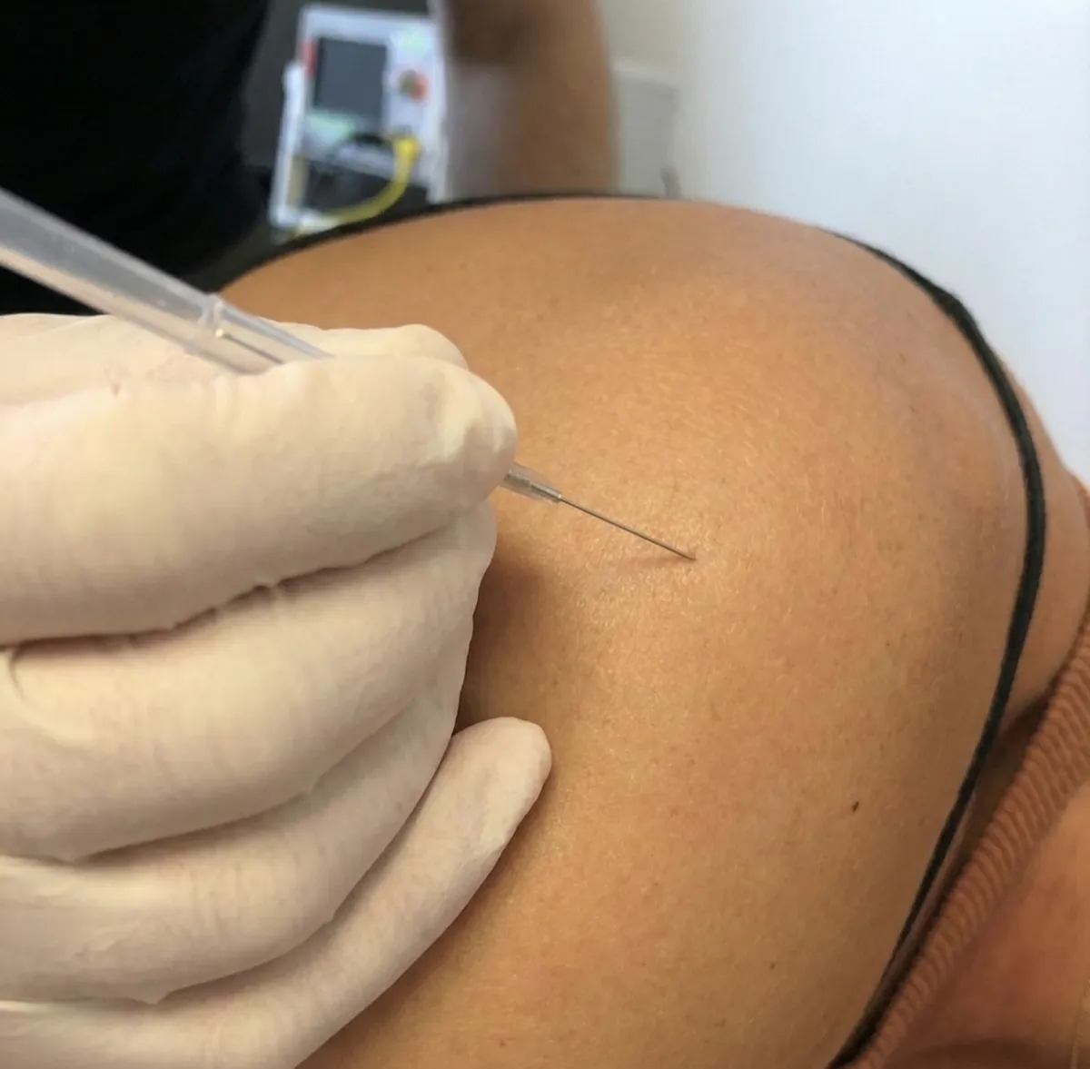 Treatment: the physiotherapist inserts a thin needle directly into the trigger point. This causes the muscle to contract briefly and then relax. The needle is removed after the treatment; it is not left in place as with acupuncture.